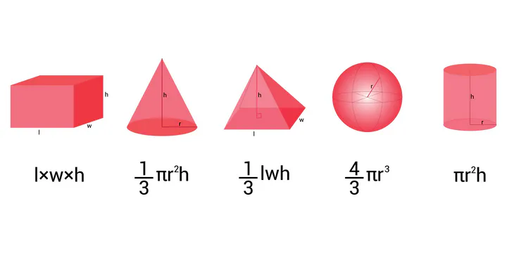 • Volume: \(V = \frac{4}{3} \pi r^3\)